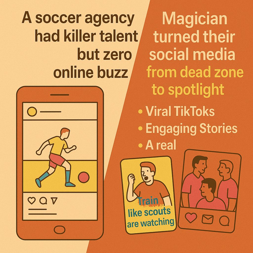 A soccer agency had killer talent but zero online buzz. They posted randomly, but no one noticed no scouts, no offers, just silence.